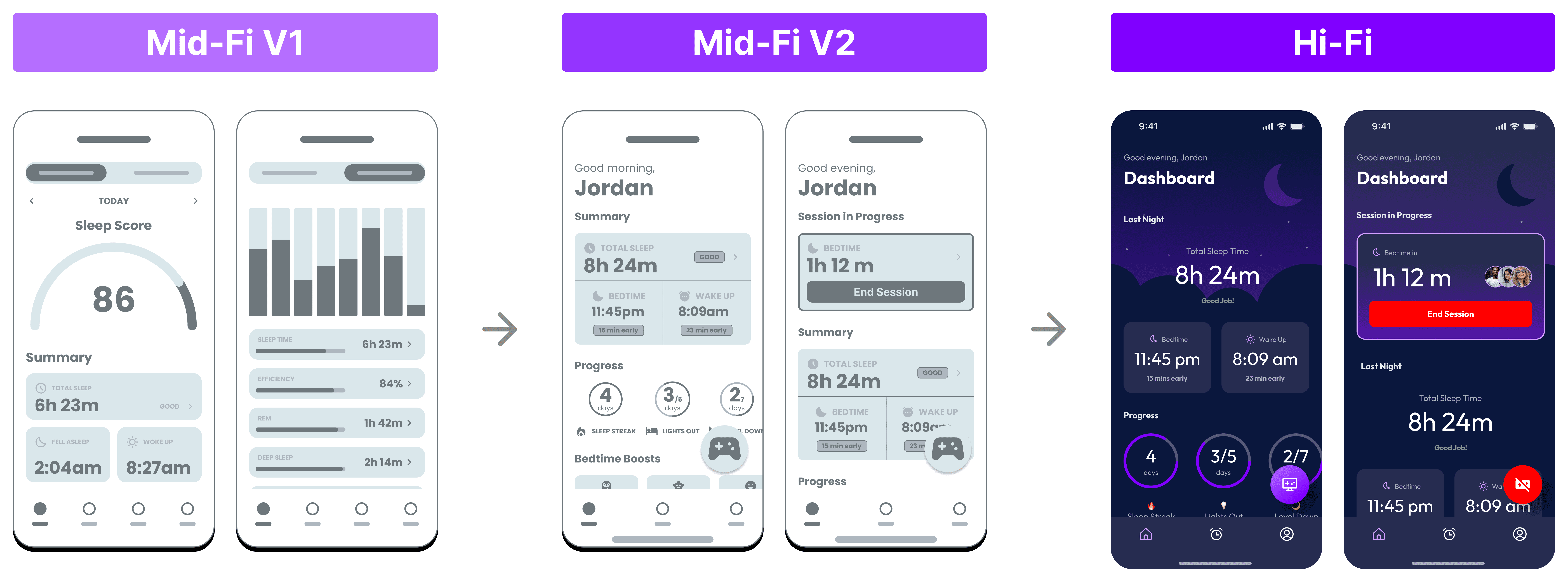 We landed on a multi-device socially-supported bedtime system rooted in commitment and progress.